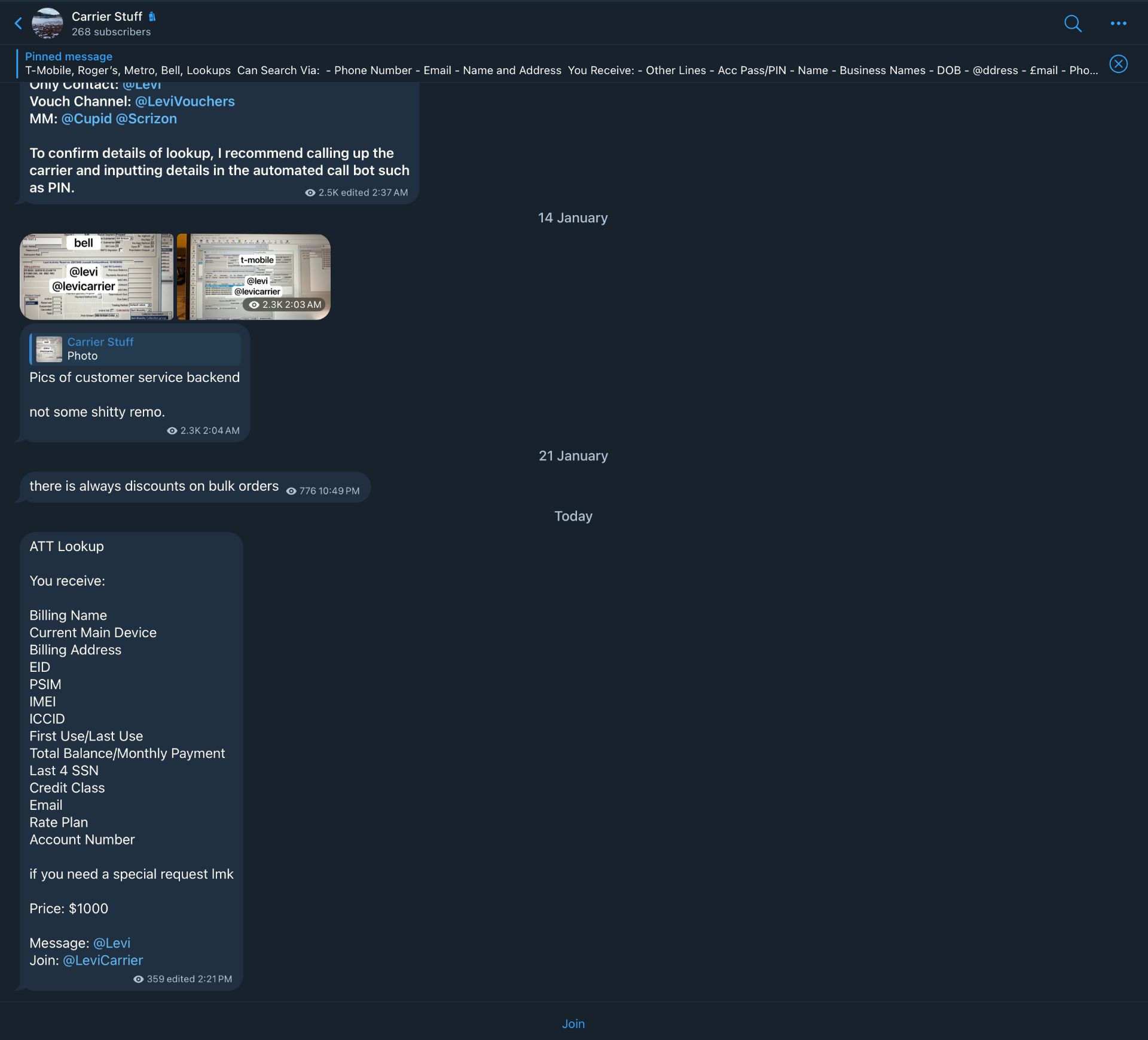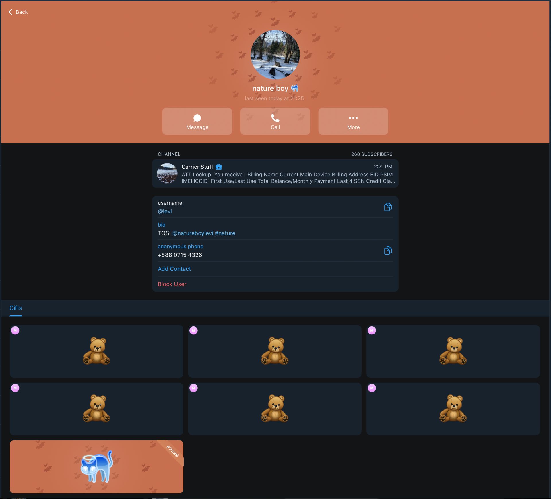 selling personal information from cellular carriers. also goes by @LeviCarrier, and @natureboylevi.